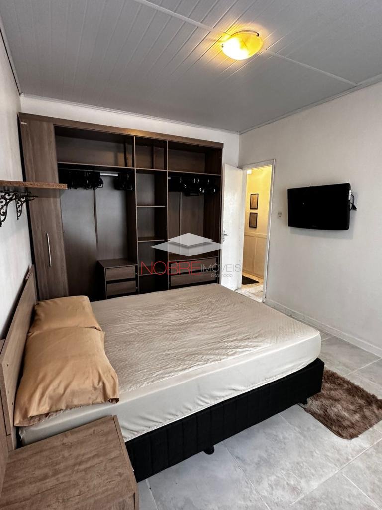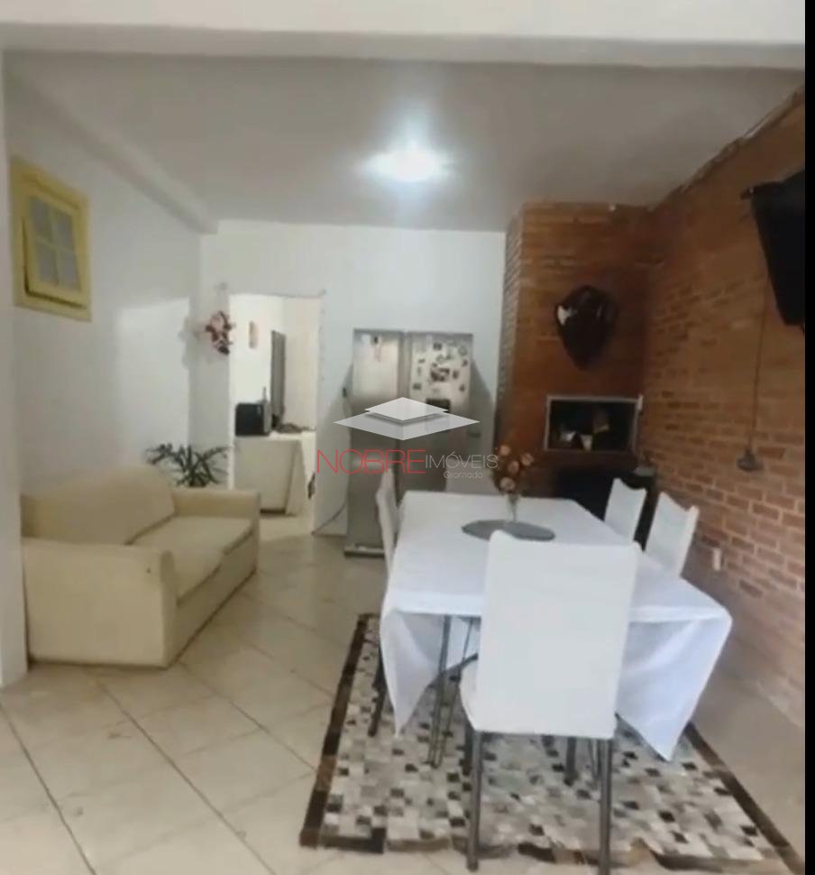 Casa com 03 quartos, semi mobiliada, cozinha, área de serviço, sala de jantar e estar integrados com lareira, banheiro social, split instalado, água quente instalada, garagem para 02 carros, amplo pátio com jardim.