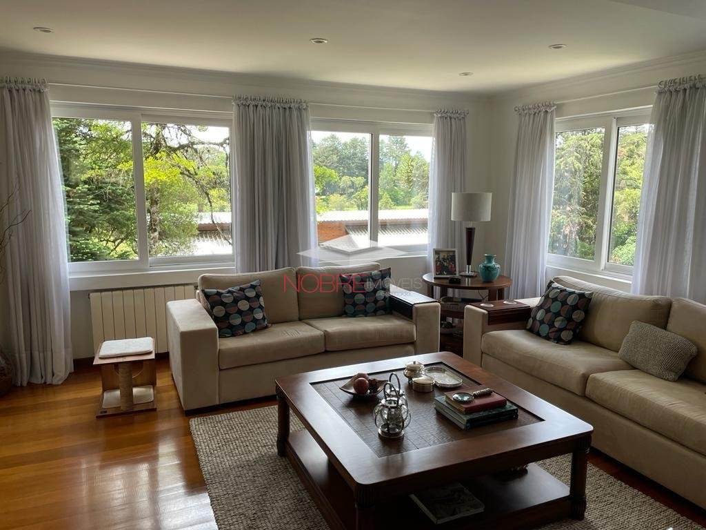 Torre redonda de dois andares junto ao andar principal, com 02 quartos de hóspedes, garagem para 05 carros, piso aquecido, aberturas com cortinas e persianas, vista para a natureza em um terreno de 1760m² com lindo jardim com o colorido das hortênsias azuis no verão e das azaleias no inverno. Excelente iluminação e posição solar.