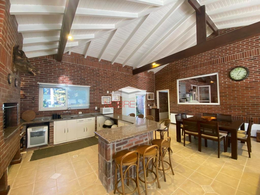 Linda casa com estilo inglês medindo 700m² de área privativa, com 05 suítes, sendo 01 delas suíte máster com closet, banheira de hidromassagem, outras 02 com estilo americanas, hall de entrada, sala de TV, sala de estar, cozinha com churrasqueira e espaço gourmet, adega, escritório, lavabo, salão de jogos e festa com deck, lavanderia forno a lenha para pizza e etc.