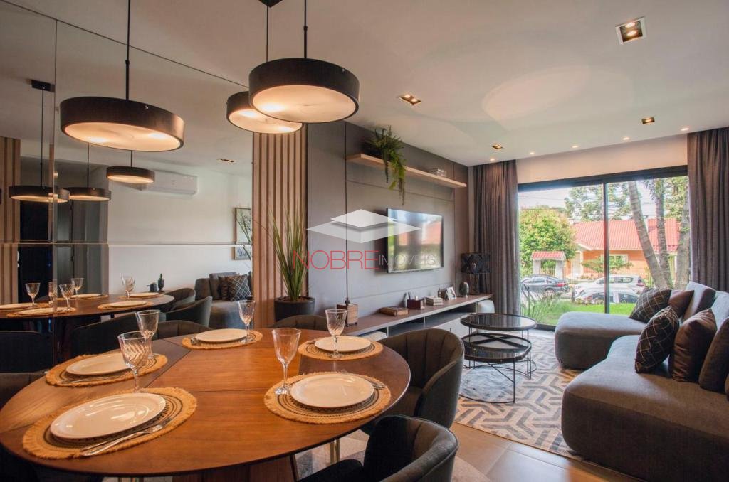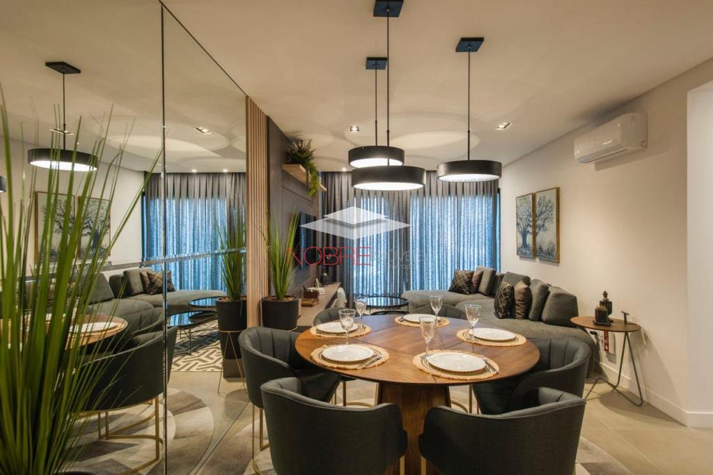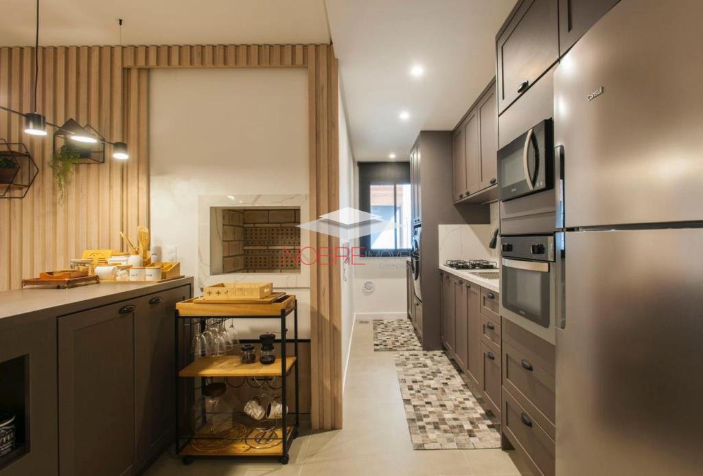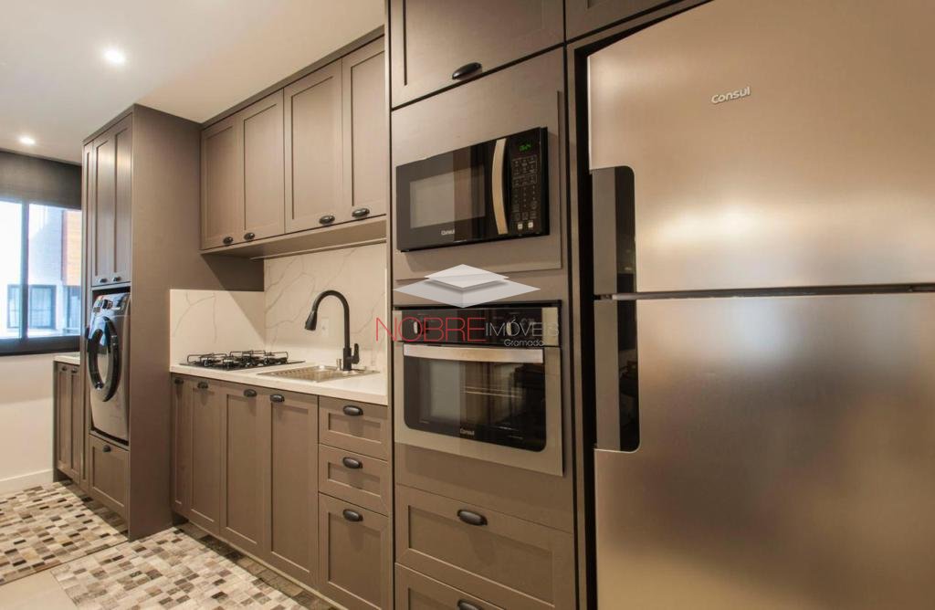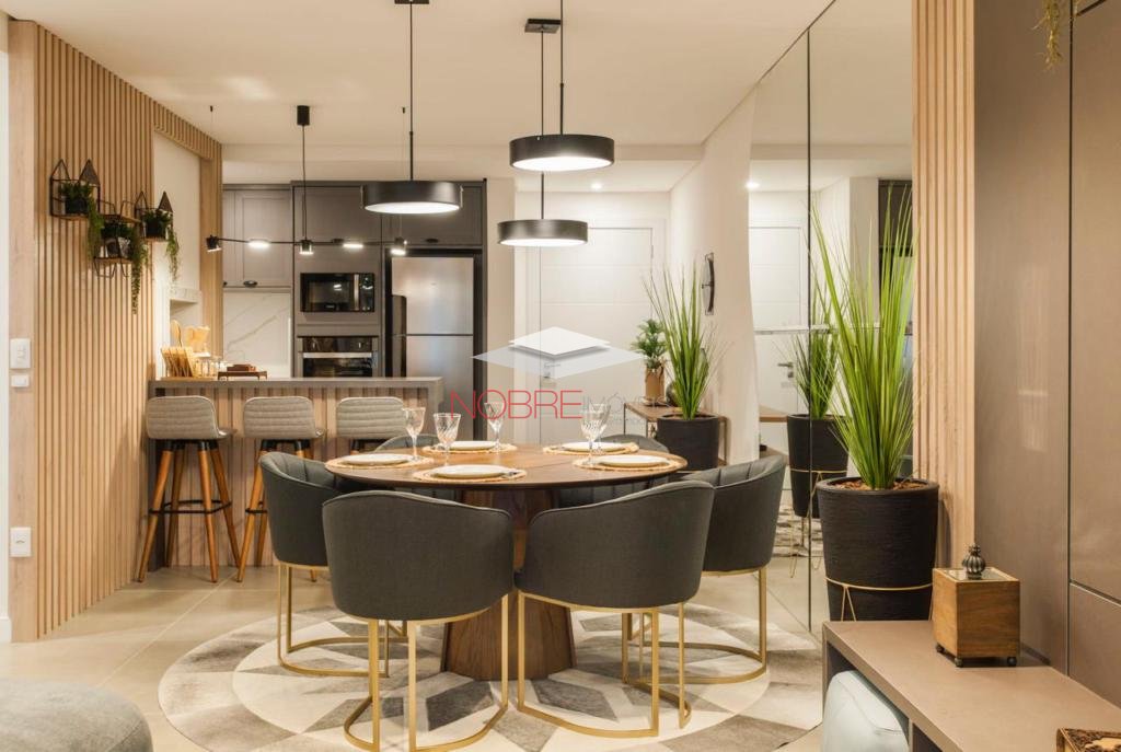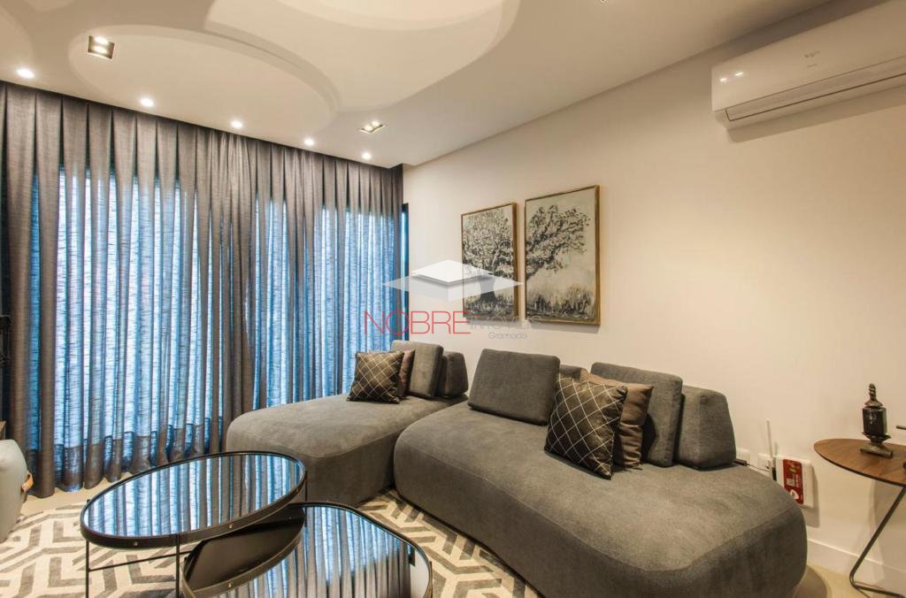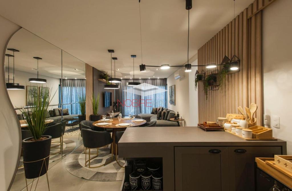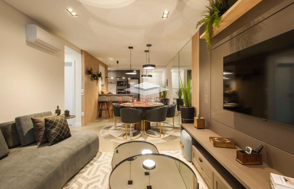 Apartamento mobiliado e decorado, 2 suítes, lavabo, living com sacada e espera para lareira, sala de jantar, cozinha americana com churrasqueira, área de serviço, água quente e splits instalados, garagem.