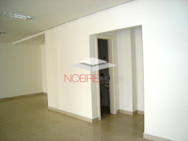 Sala comercial de 162m² de área total, lavabo, depósito, espera para split e piso porcelanato.