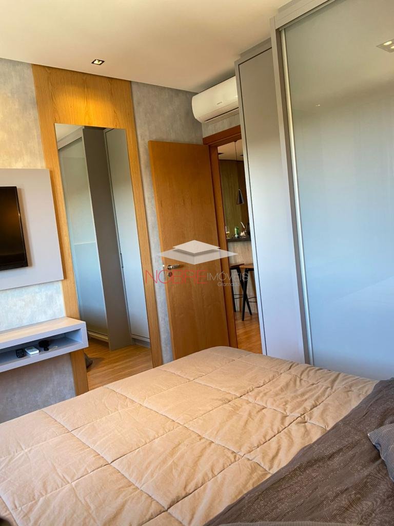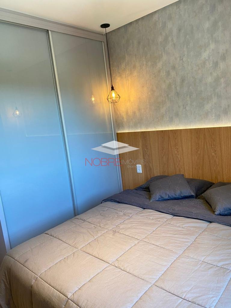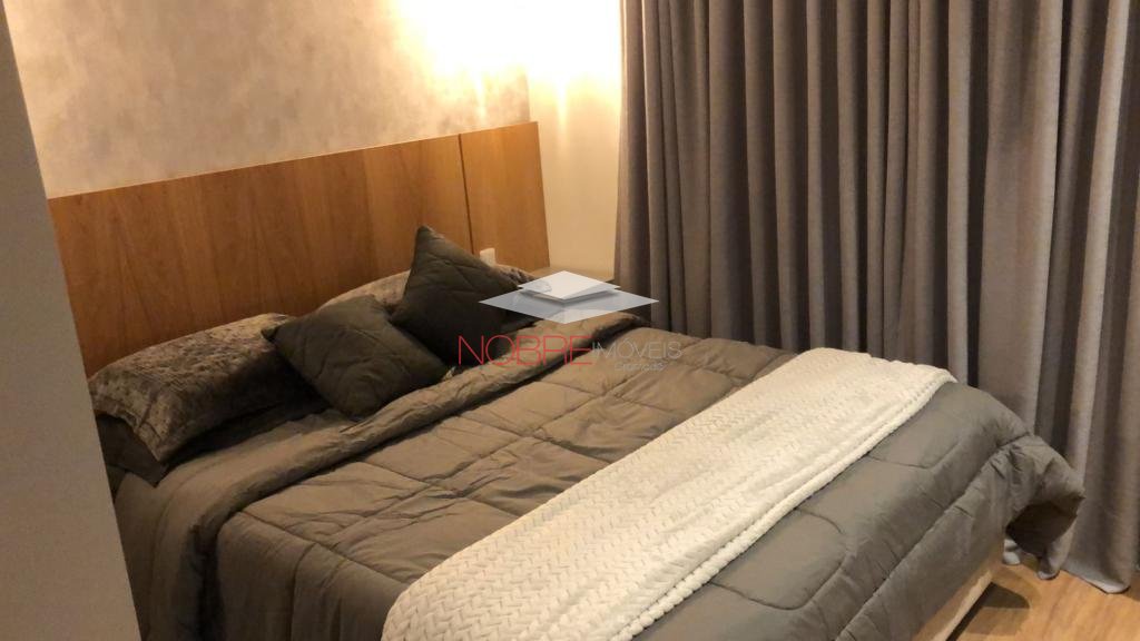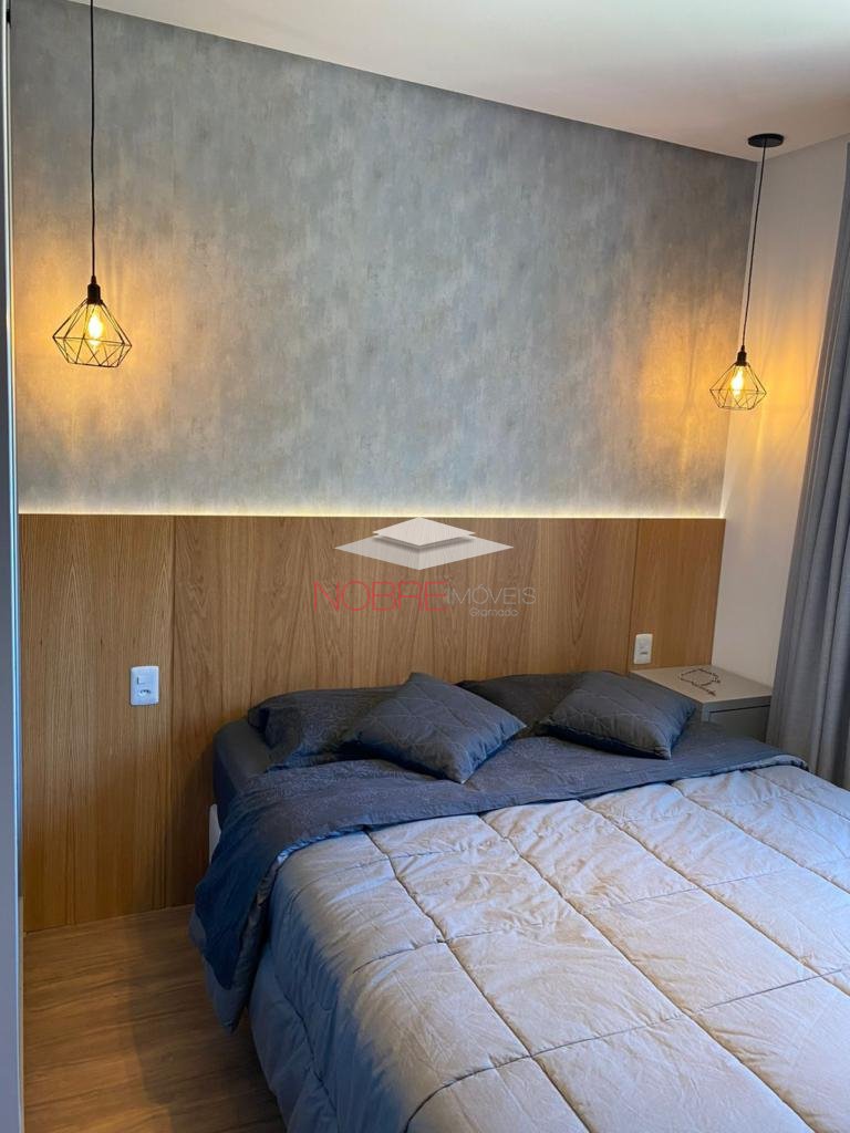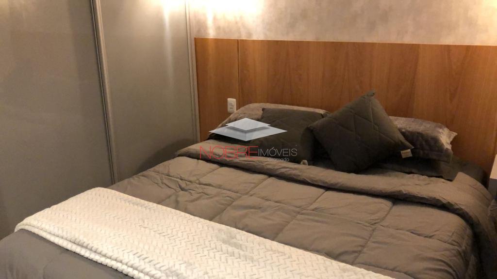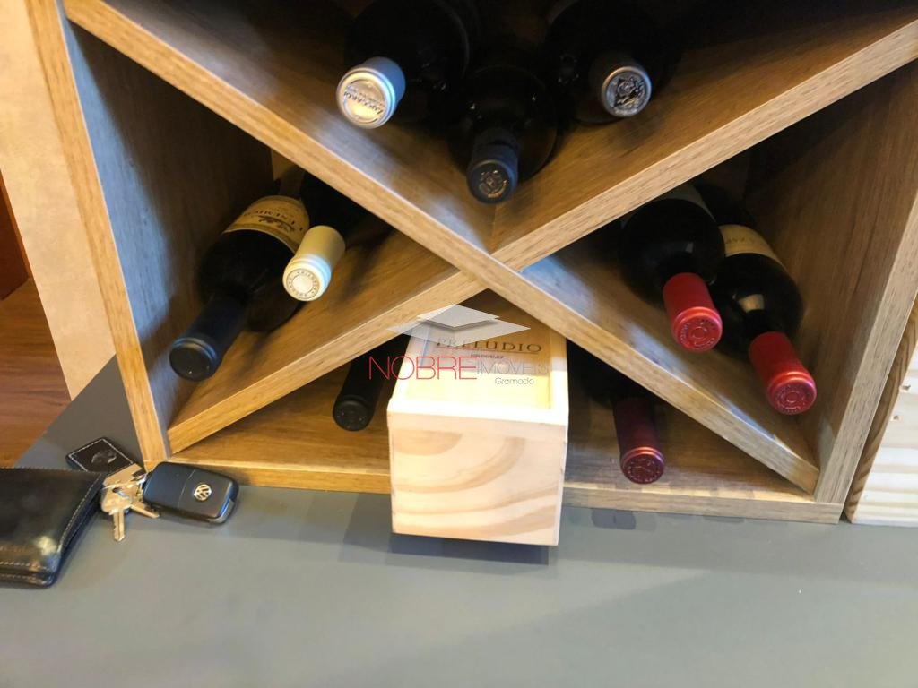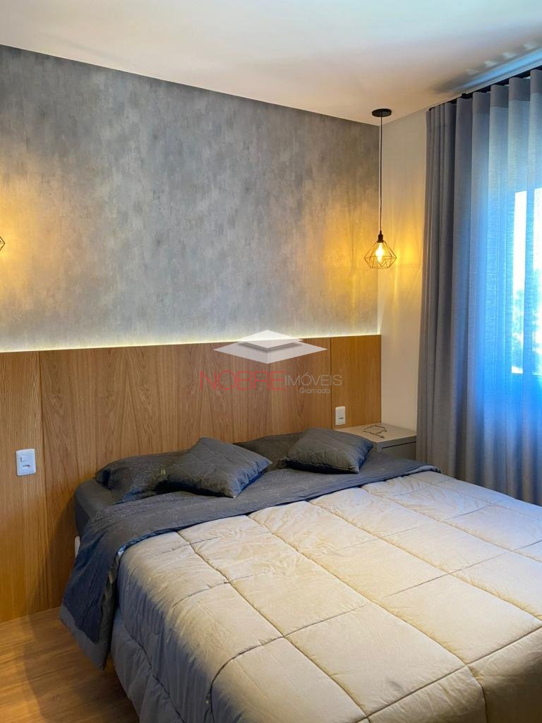 Apartamento totalmente mobiliado, decorado e equipado, composto por 01 dormitório, banho social, living 02 ambientes com sacada e lareira, cozinha americana com churrasqueira, área de serviço, splits instalados, 01 vaga de garagem. Esquadrias em PVC com vidros duplos.
