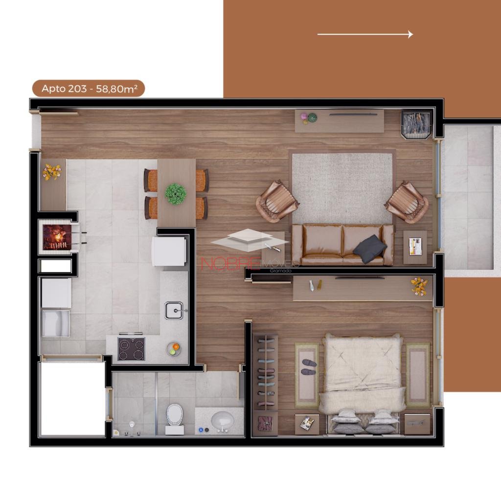 Apartamento com 01 suíte, com 80,94 m2 , 01 banheiro, porcelanato, espera para split, aberturas em PVC e vidro duplo, 01 vaga de garagem.