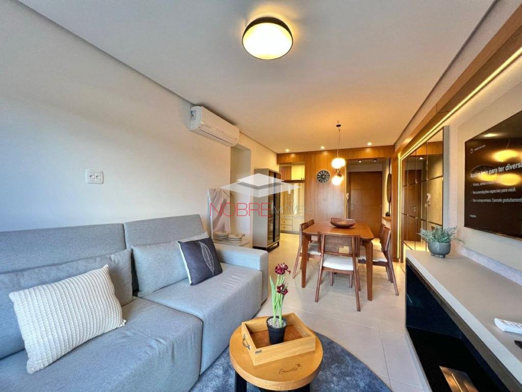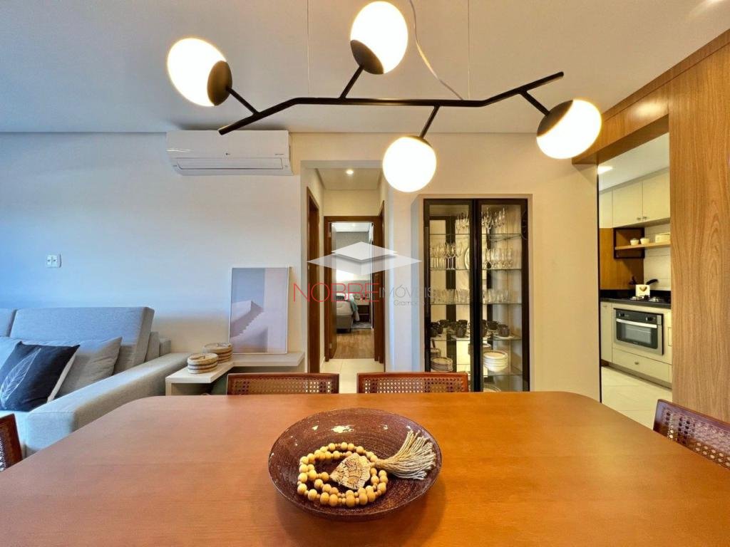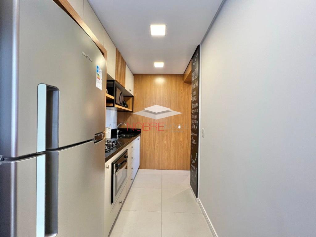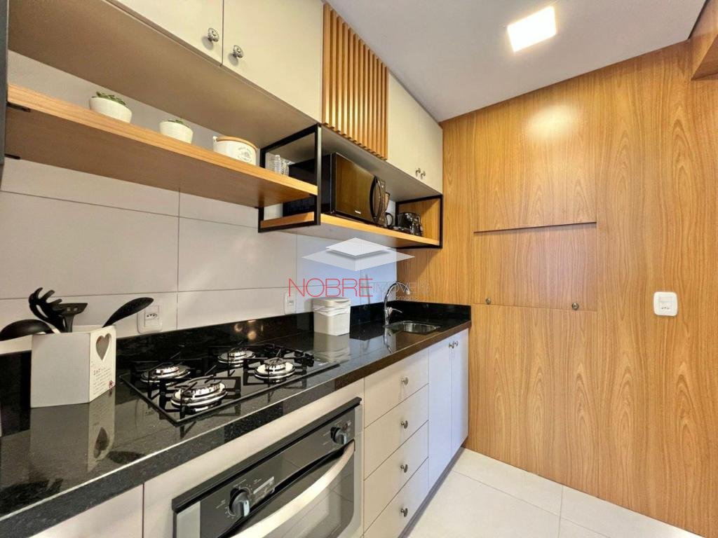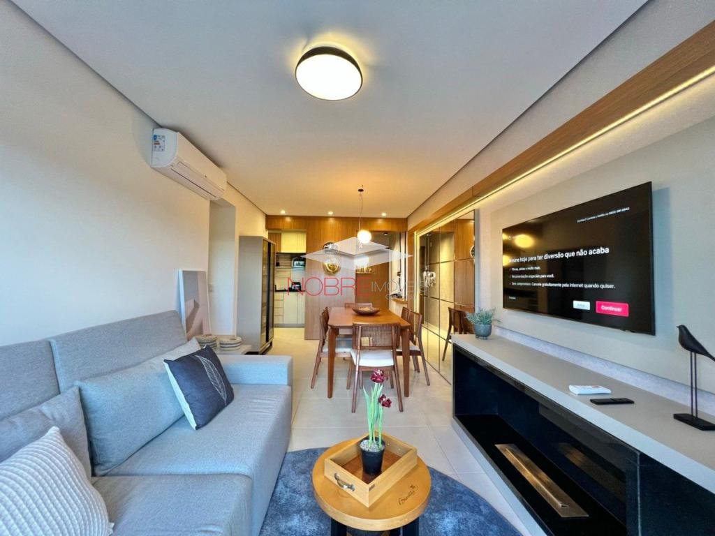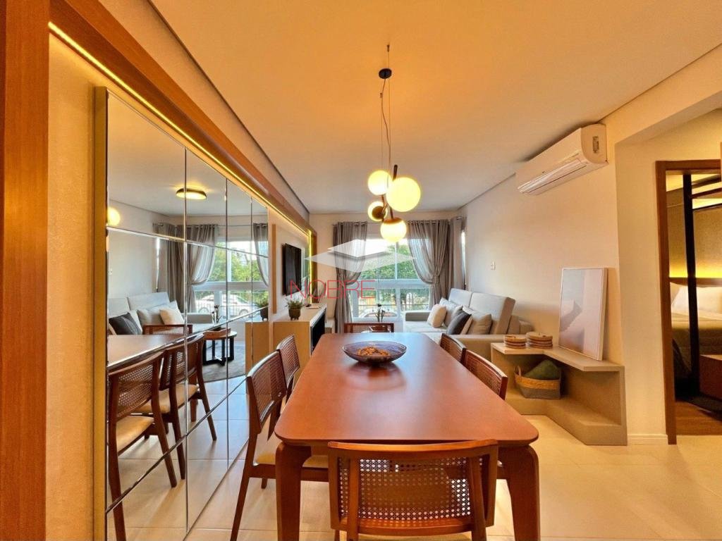 Apartamento 2 dormitorios (1 suíte), banho social, sala de estar/jantar com sacada integrada, cozinha com churrasqueira, área de serviço, espera para split, piso porcelanato e laminado, 1 vaga de garagem.