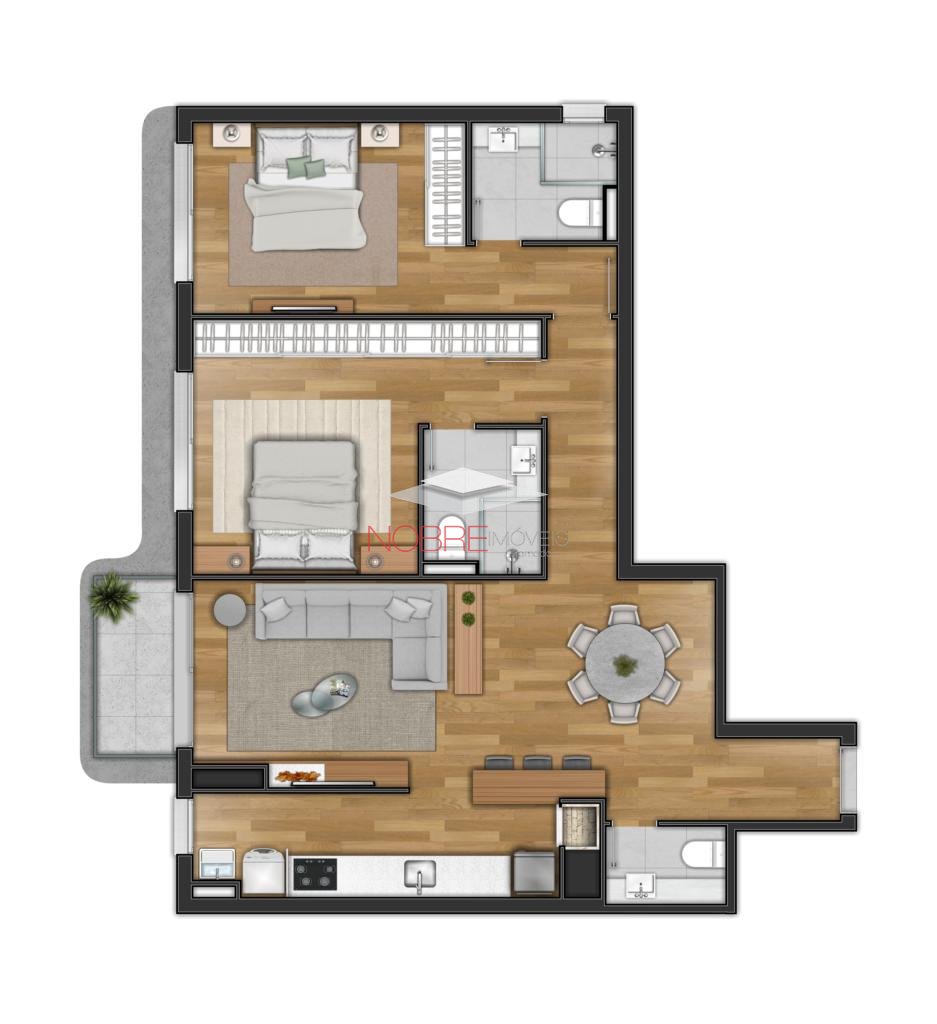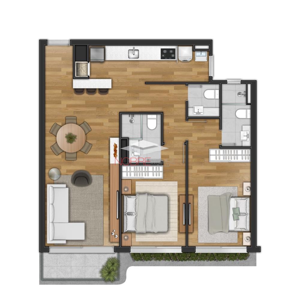 Nobre Imóveis Gramado vende apartamento 02 quarto, cozinha, sala de estar, jantar, lavabo ou banho social, com suíte.