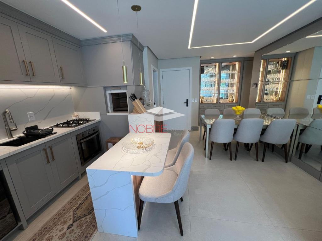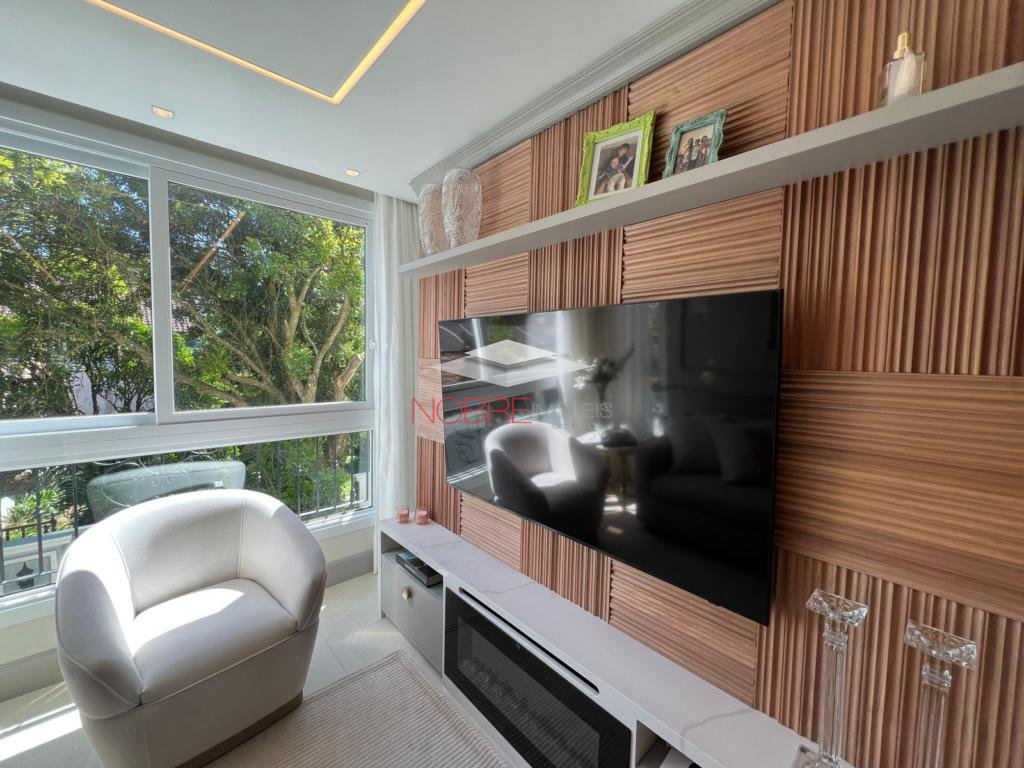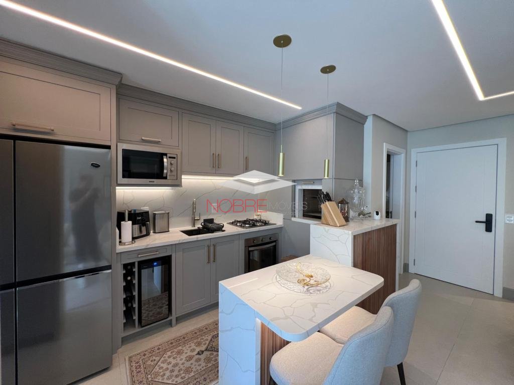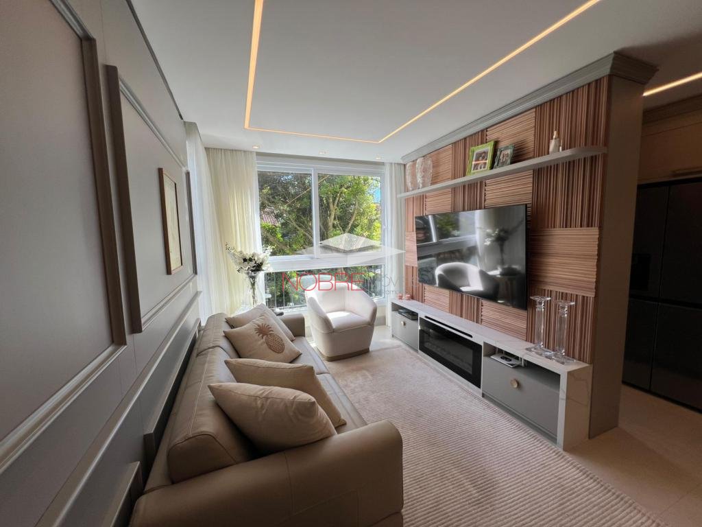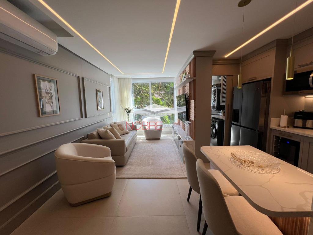 Apartamento totalmente mobiliado e decorado, composto por 02 suítes, lavabo, amplo living 02 ambientes, cozinha americana com churrasqueira, área de serviço e 01 vaga de garagem. Esquadrias em PVC com vidros duplos, persianas automatizadas nos dormitórios, salas com janelas bay-window, esperas para calefação e splits, rebaixo em gesso.