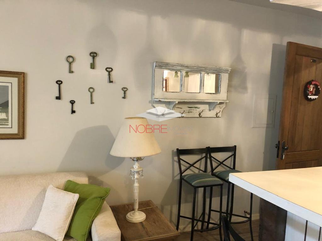 Apartamento 1 dormitório, mobiliado e equipado, sala de estar, cozinha americana, banho social, espera para lareira, garagem.