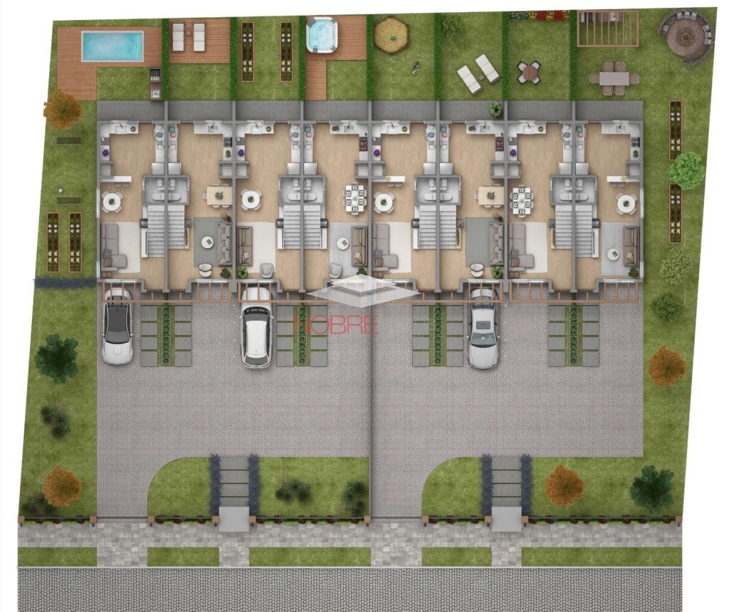 Tranquilidade, natureza e valorização, tudo isso numa residência de 79,81m², com 02 quartos (suítes), cozinha, sala de estar e jantar integrados, lavabo, com uma vaga de garagem privativa de 14,00m² e um pátio exclusivo de 50,40m² laterais e 20,75m².