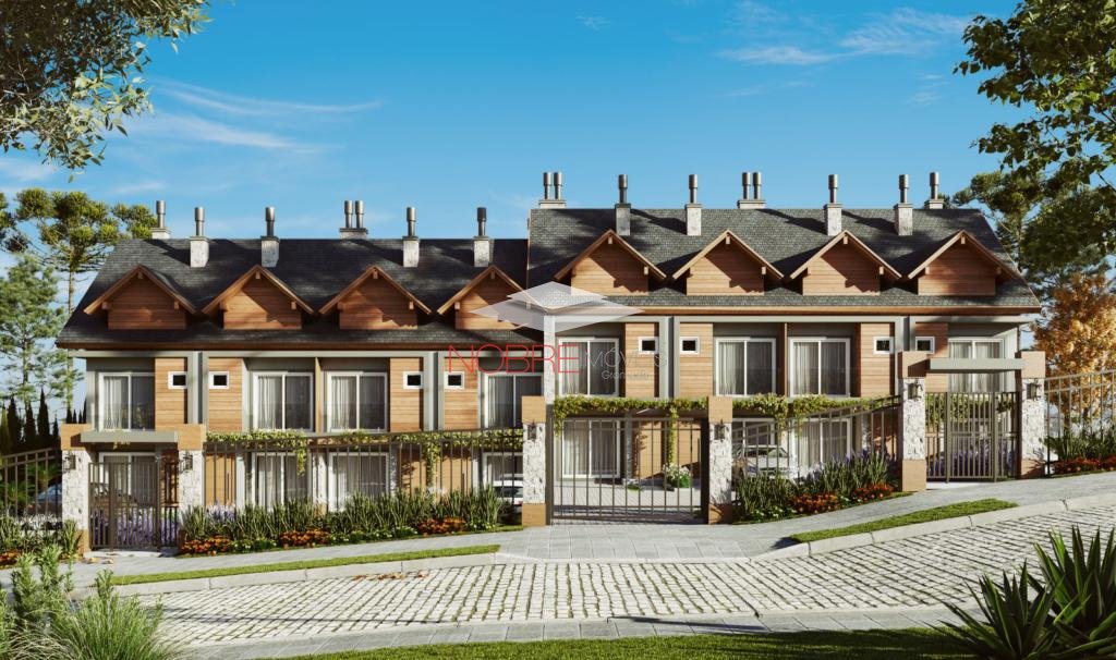 A casa possui um pátio privativo, uma verdadeira extensão do seu lar, um espaço externo que proporciona momentos únicos, perfeito para desfrutar o clima da Serra. Com uma vista frontal para a rua. com design sofisticado, otimizando espaço e convivência.
