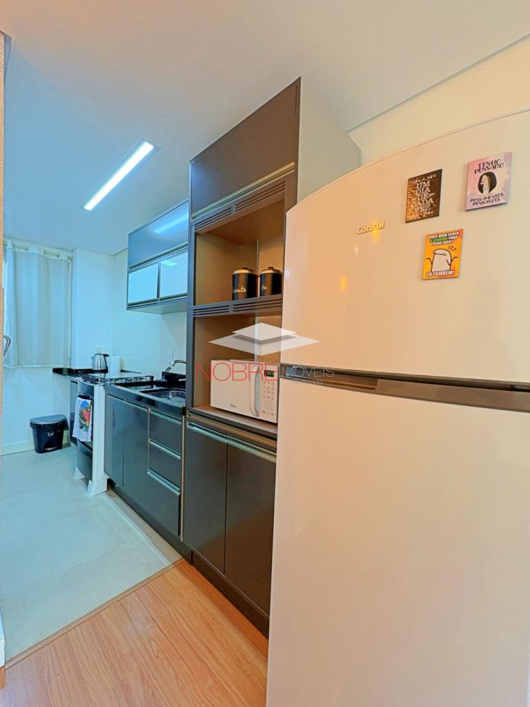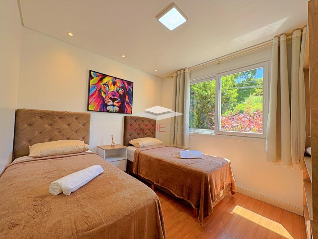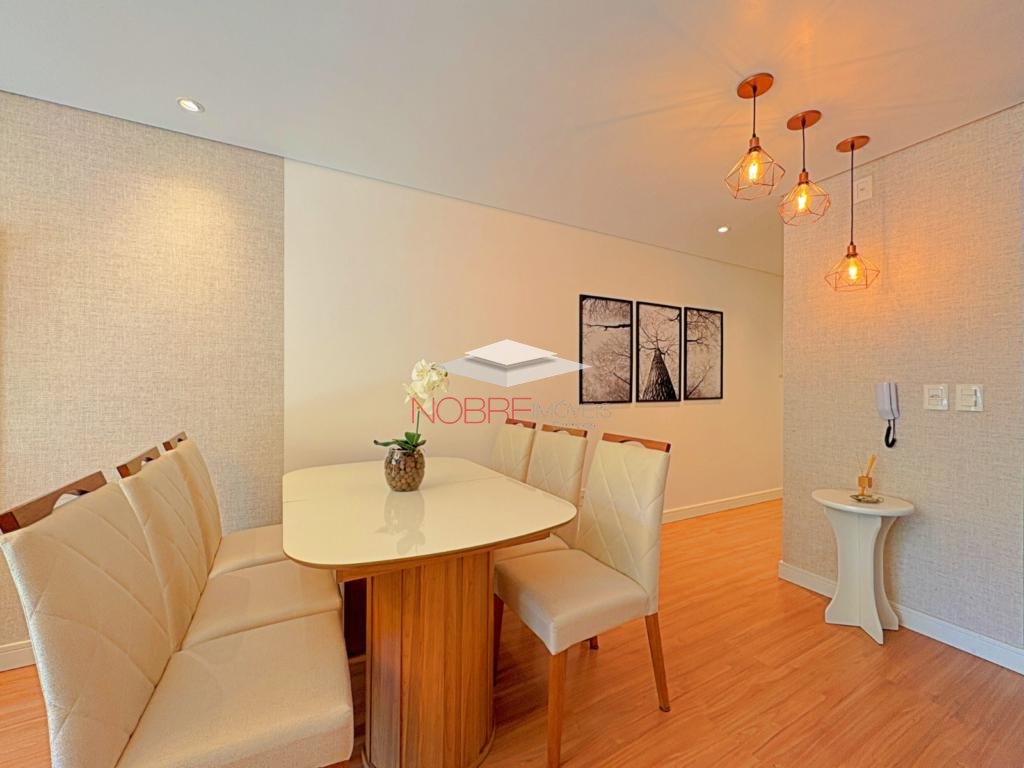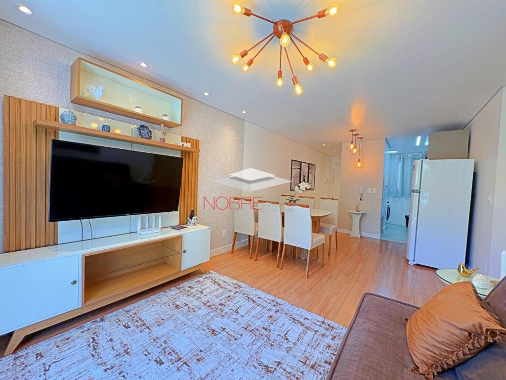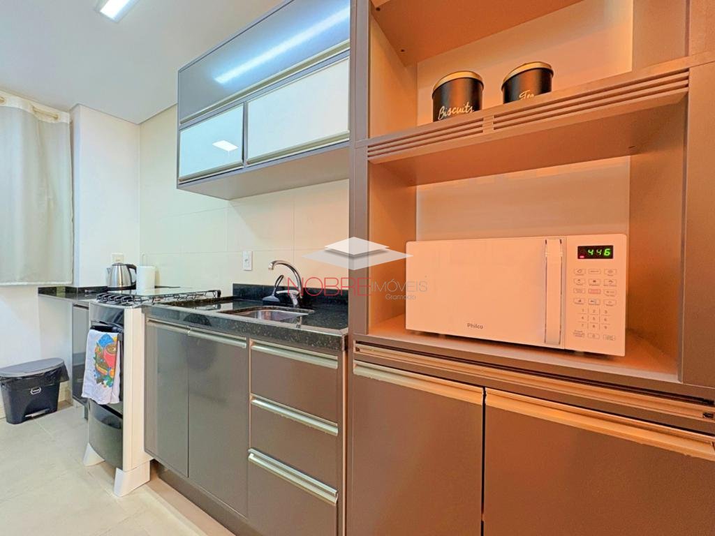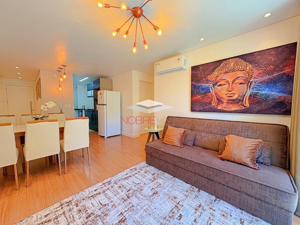 Excelente apartamento mobiliado, equipado e decorado, de 02 quartos sendo 1 suíte, sala de jantar e estar integrados com sacada, com calefator, cozinha americana com churrasqueira, área de serviço, banho social, piso laminado no living e quartos, piso porcelanato nos banheiros e cozinha, aberturas em PVC, teto rebaixado em gesso e 02 vagas de garagem e linda vista.