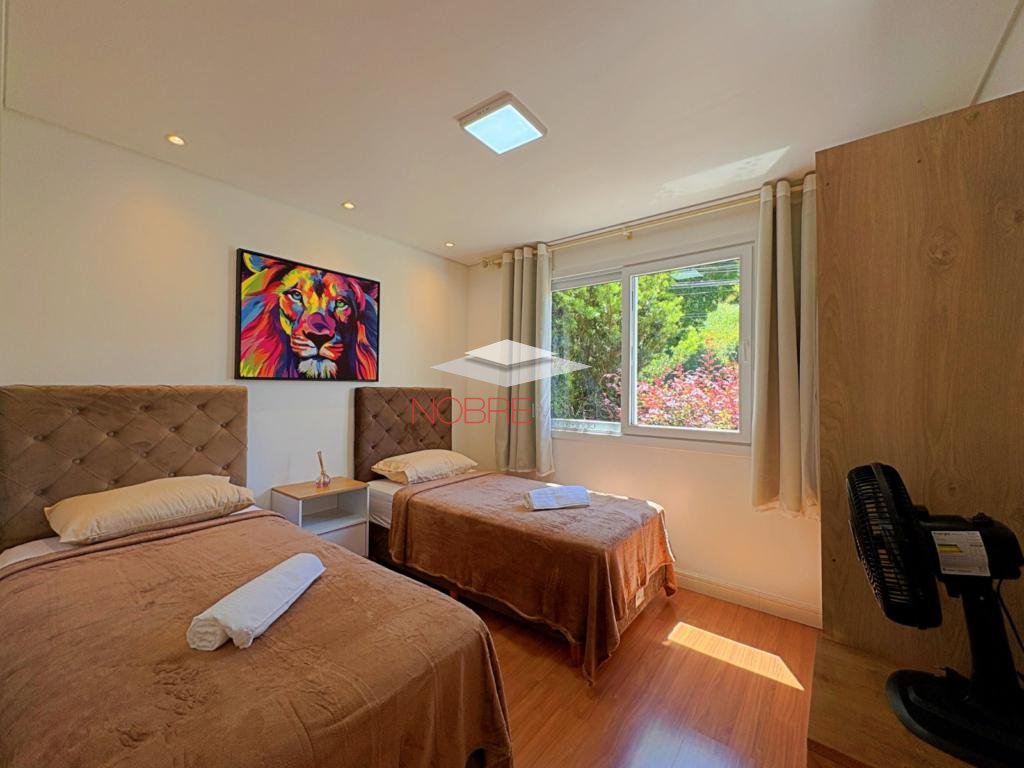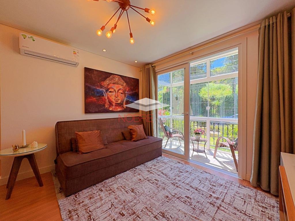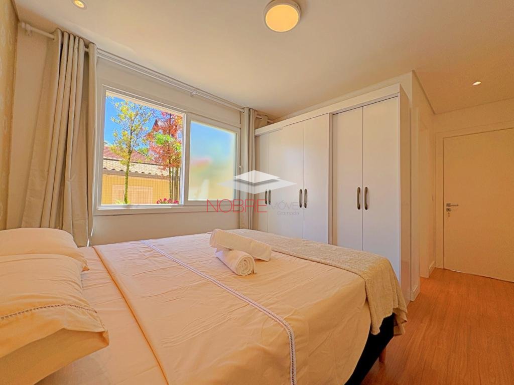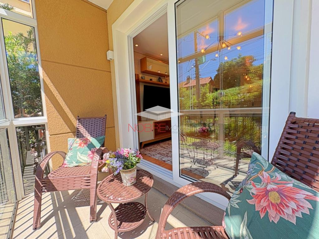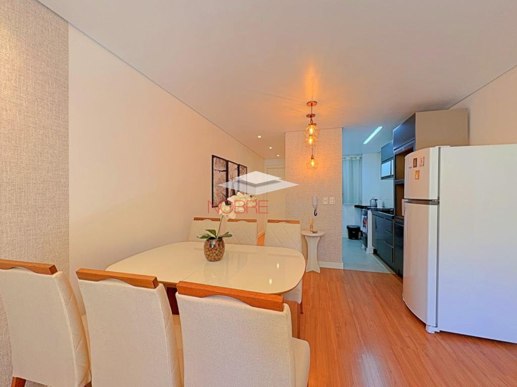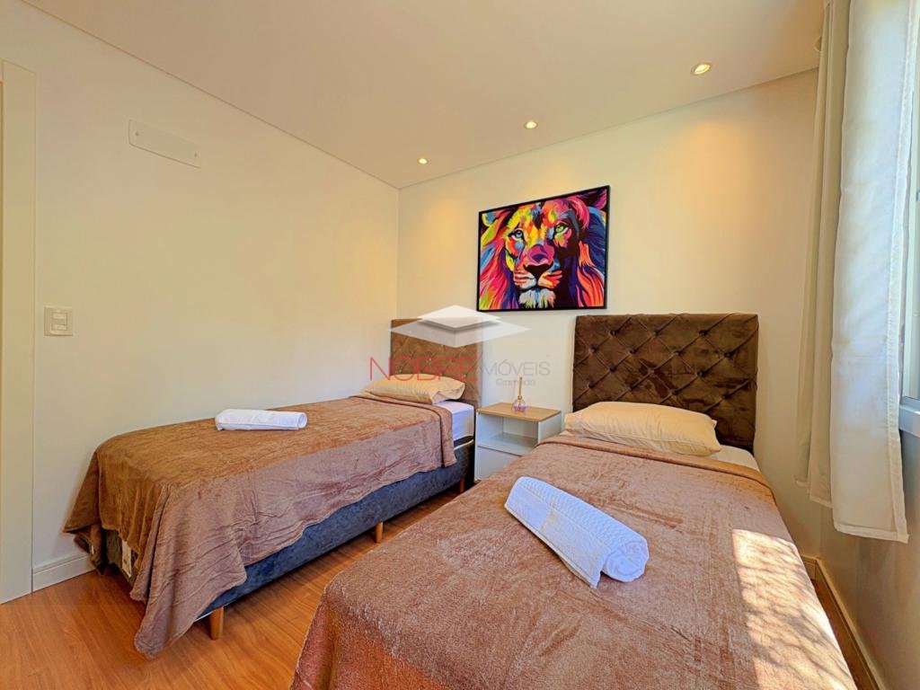 Excelente apartamento mobiliado, equipado e decorado, de 02 quartos sendo 1 suíte, sala de jantar e estar integrados com sacada, com calefator, cozinha americana com churrasqueira, área de serviço, banho social, piso laminado no living e quartos, piso porcelanato nos banheiros e cozinha, aberturas em PVC, teto rebaixado em gesso e 02 vagas de garagem e linda vista.