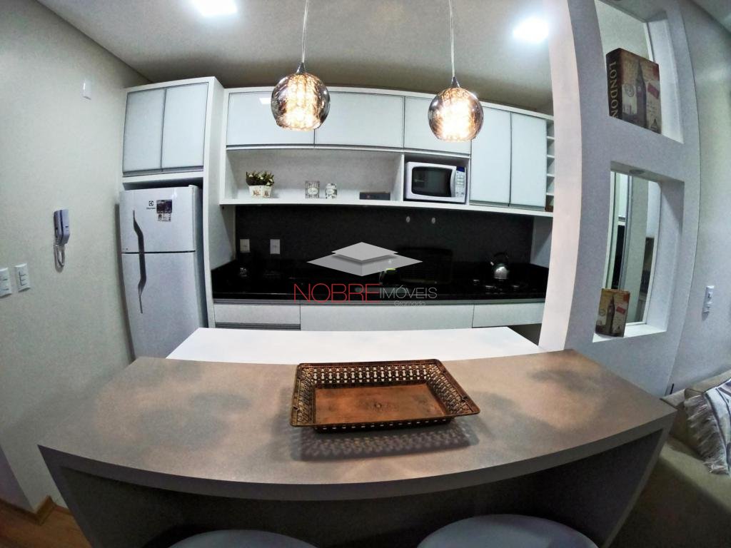 Apartamento totalmente mobiliado de 02 dormitórios (sendo 01 suíte), living com lareira, cozinha americana, área de serviço, lavabo, sacada com churrasqueira, água quente, split e calefação instalados, piso porcelanato e laminado, aberturas em pvc e 01 vaga de garagem.